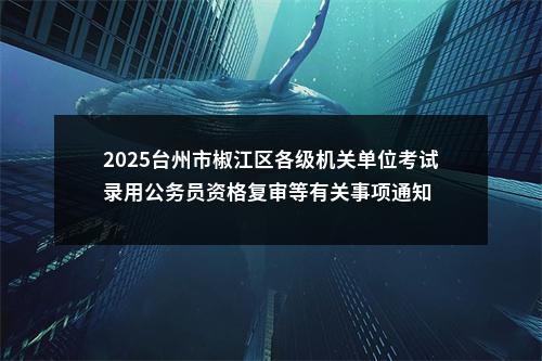 原标题:台州市椒江区各级机关单位2025年度考试录用公务员资格复审等有关事项通知