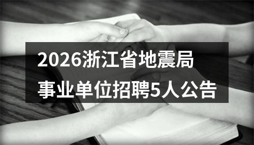 为满足事业单位补充工作人员需要,根据《事业单位人事管理条例》、《事业单位公开招聘人员暂行规定》、《中国地震局进人管理办法》等有关规定,2026年度浙江省地震局局属事业单位拟面向社会公开招聘5名硕士研究生及以上学历应届毕业生。现将有关事项公告如下。