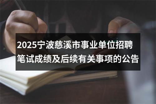 2025年慈溪市事业单位公开招聘工作人员笔试已结束,现将笔试成绩及后续有关事项公告如下: